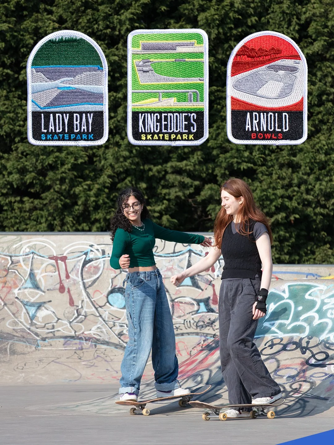 We’ve designed 3 embroidered patches depicting Nottingham’s Lady Bay, King Eddie’s, and Arnold Bowls skateparks - ready to be sewn onto your bag, jacket, hat, suitcase, or just collected as a souvenir!