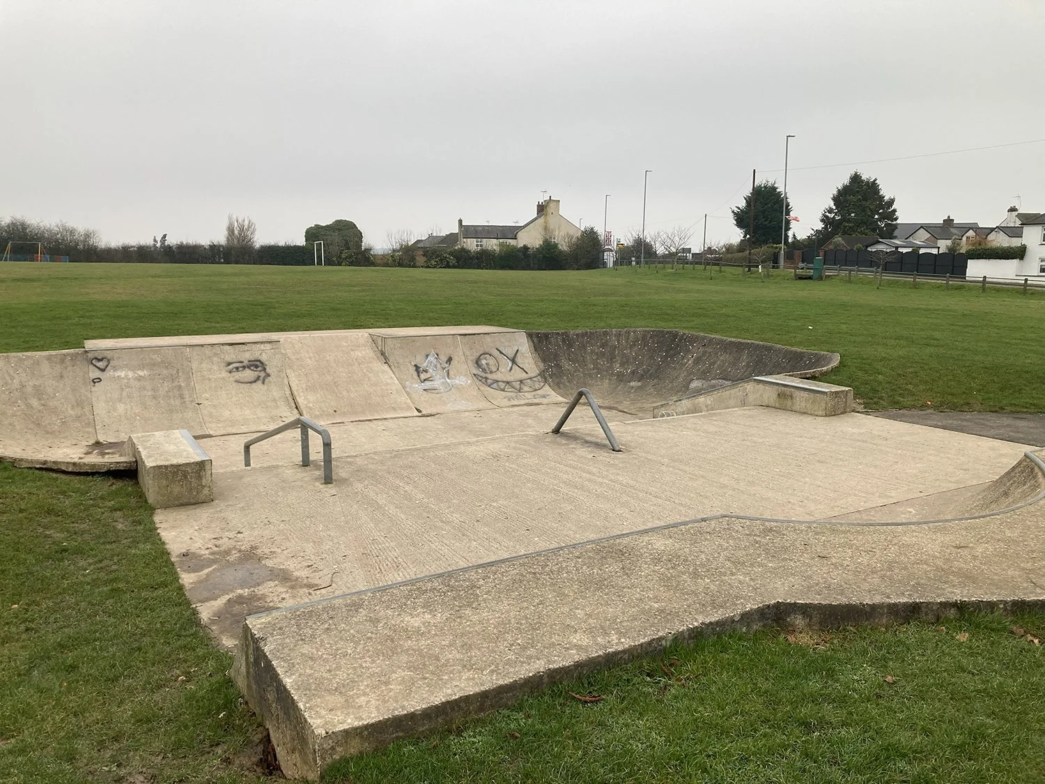 A brand new concrete skatepark with mellow transition, handrails, and a variety of ledges. Built by Canvas Skateparks in 2025, following more than 2 years of campaigning and community consultation.